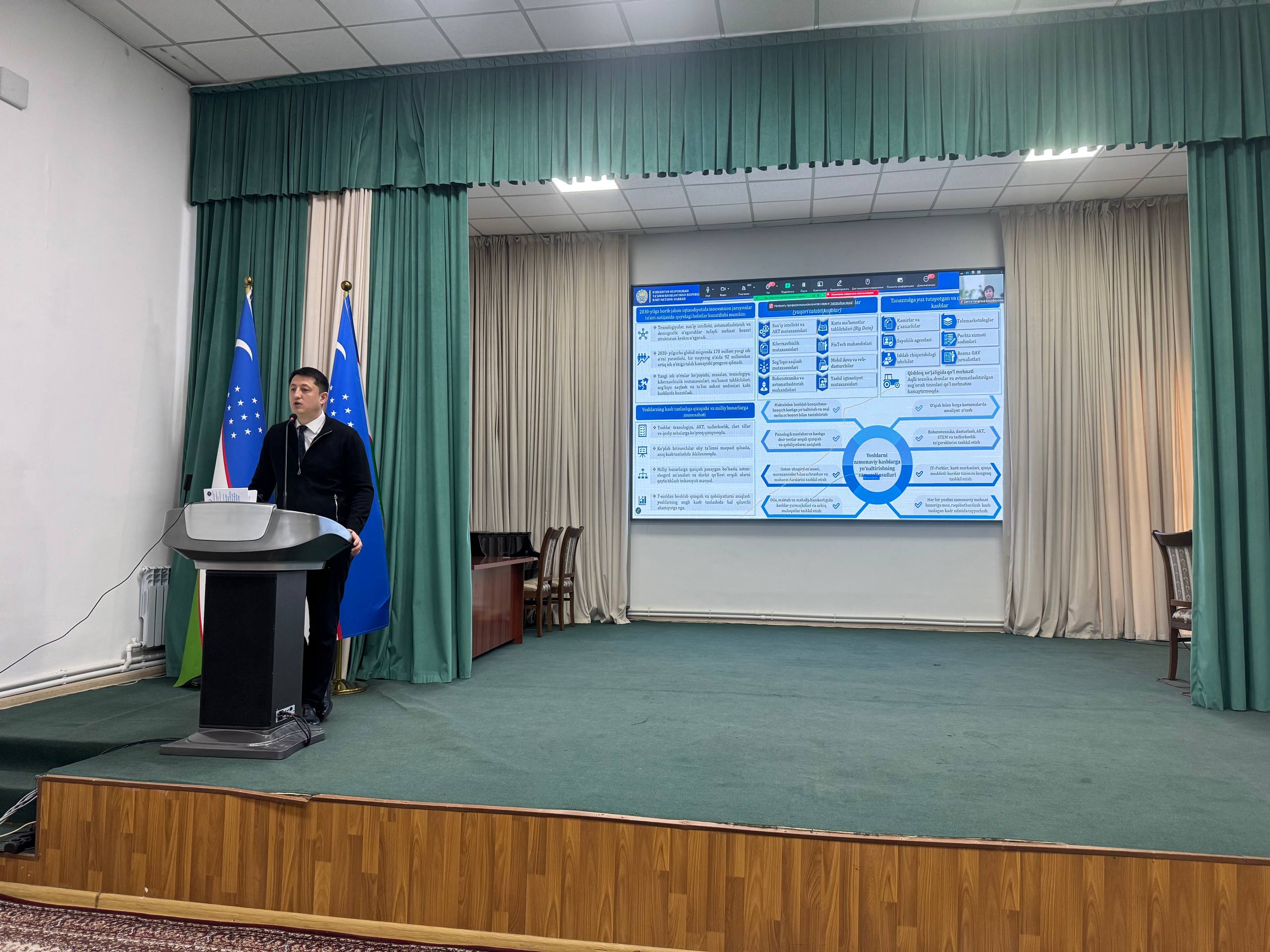 Ta‘limni rivojlantirish respublika ilmiy-metodik markazi bo‘lim boshlig‘i Oʻtkir Odiljonov esa o‘quvchilarni kasbga yo‘naltirish va mehnat bozori masalalaridagi zamonaviy yondashuvlar yuzasidan o‘z maʼruzasi bilan ishtirok etdi.