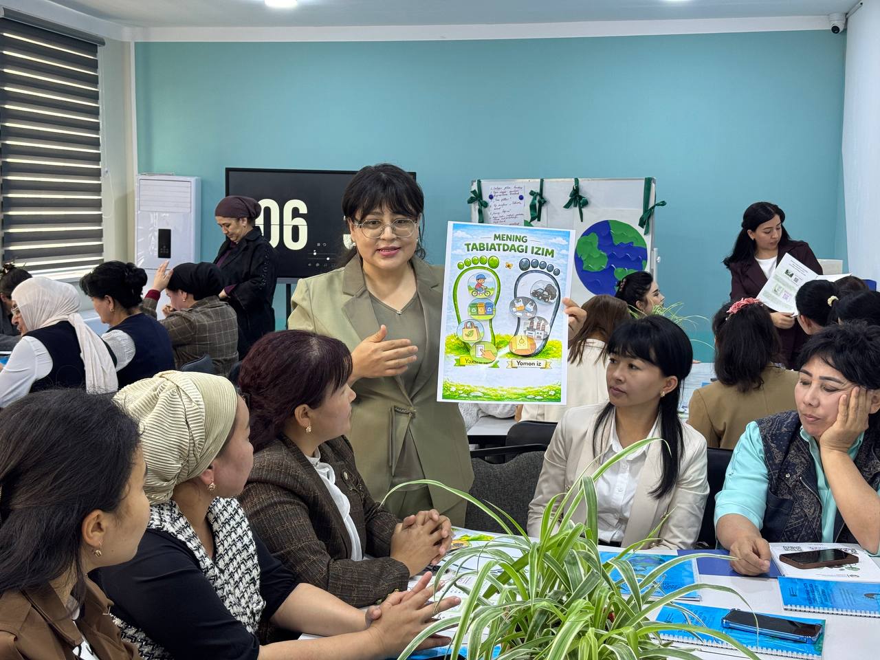 Mashg‘ulotlarda har bir ishtirokchi barcha yo‘nalishlar bo‘yicha ekologik tarbiya va ekologik savodxonlikni shakllantirishning turli metod va texnologiyalarini bevosita sinab ko‘rish imkoniyatiga ega bo‘ldi.