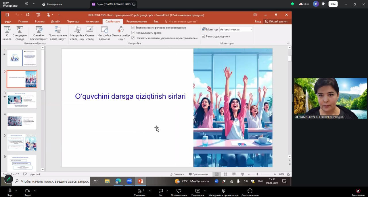 Ta’limni rivojlantirish respublika ilmiy-metodik markazi tomonidan joriy yilning 9-aprel kuni “Ta’limda kognitiv faollikni oshirish: motivatsiya va dars dizaynining neyropedagogik asoslari” mavzusida Meet up tashkil etildi. Unda respublikaning turli hududlaridan 350 nafardan ortiq pedagog ishtirok etdi.