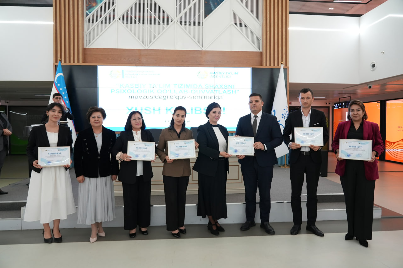 Joriy yilning 14–17-aprel kunlari Ta’limni rivojlantirish respublika ilmiy-metodik markazi hamda Kasbiy ta’lim agentligi hamkorligida “Kasbiy ta’lim tizimida shaxsni psixologik qo‘llab-quvvatlash” mavzusida o‘quv-seminar tashkil etildi.
