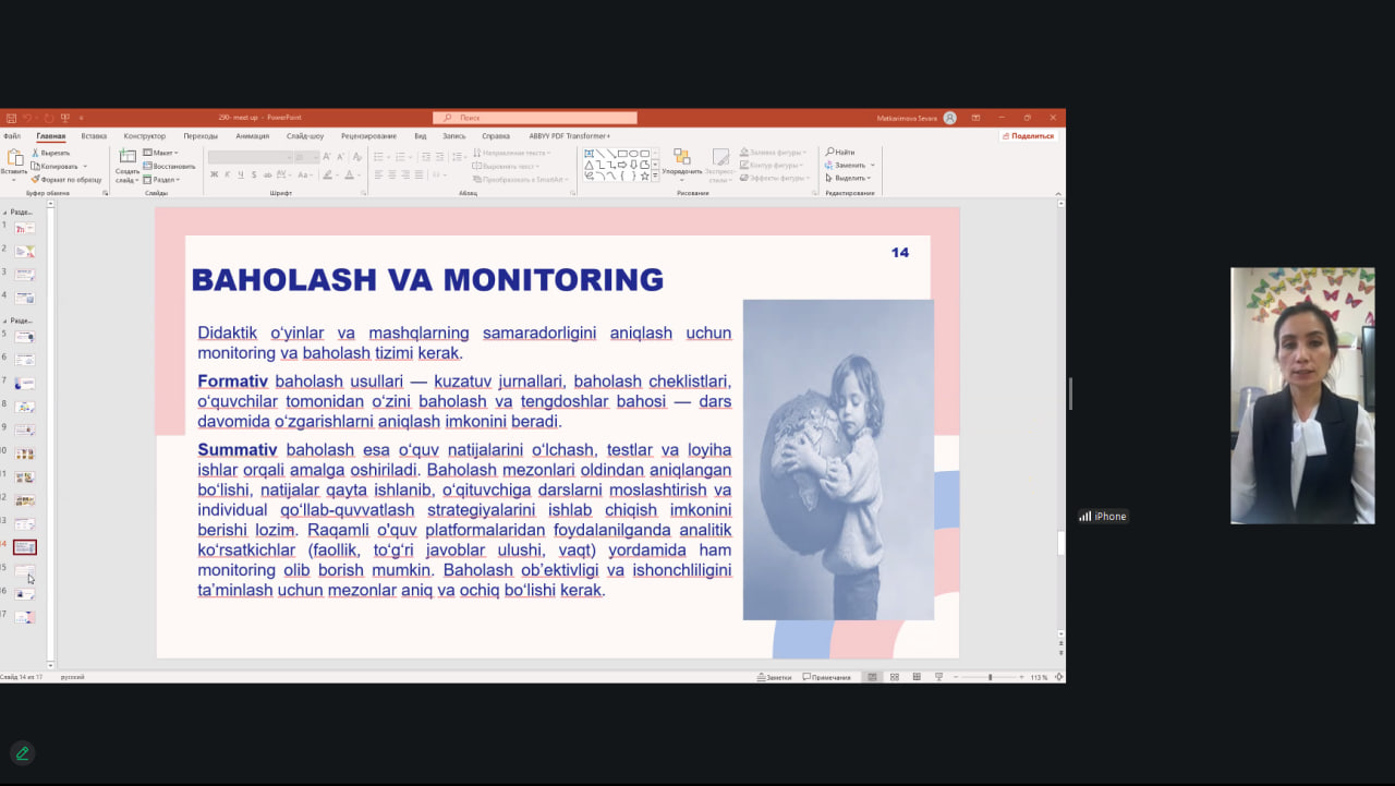 Shuningdek, 19-fevral kuni tashkil etilgan mashg‘ulotlarda Toshkent shahri Bektemir tumanidagi 290-umumtaʼlim muassasasi boshlang‘ich sinf o‘qituvchisi Gulnoza Xazanova hamda mazkur maktabning maxsus pedagogi Shohista Akbarova “Tabaqalashtirilgan yondashuv” mavzusida o‘z bilim va tajribalari bilan o‘rtoqlashdi.