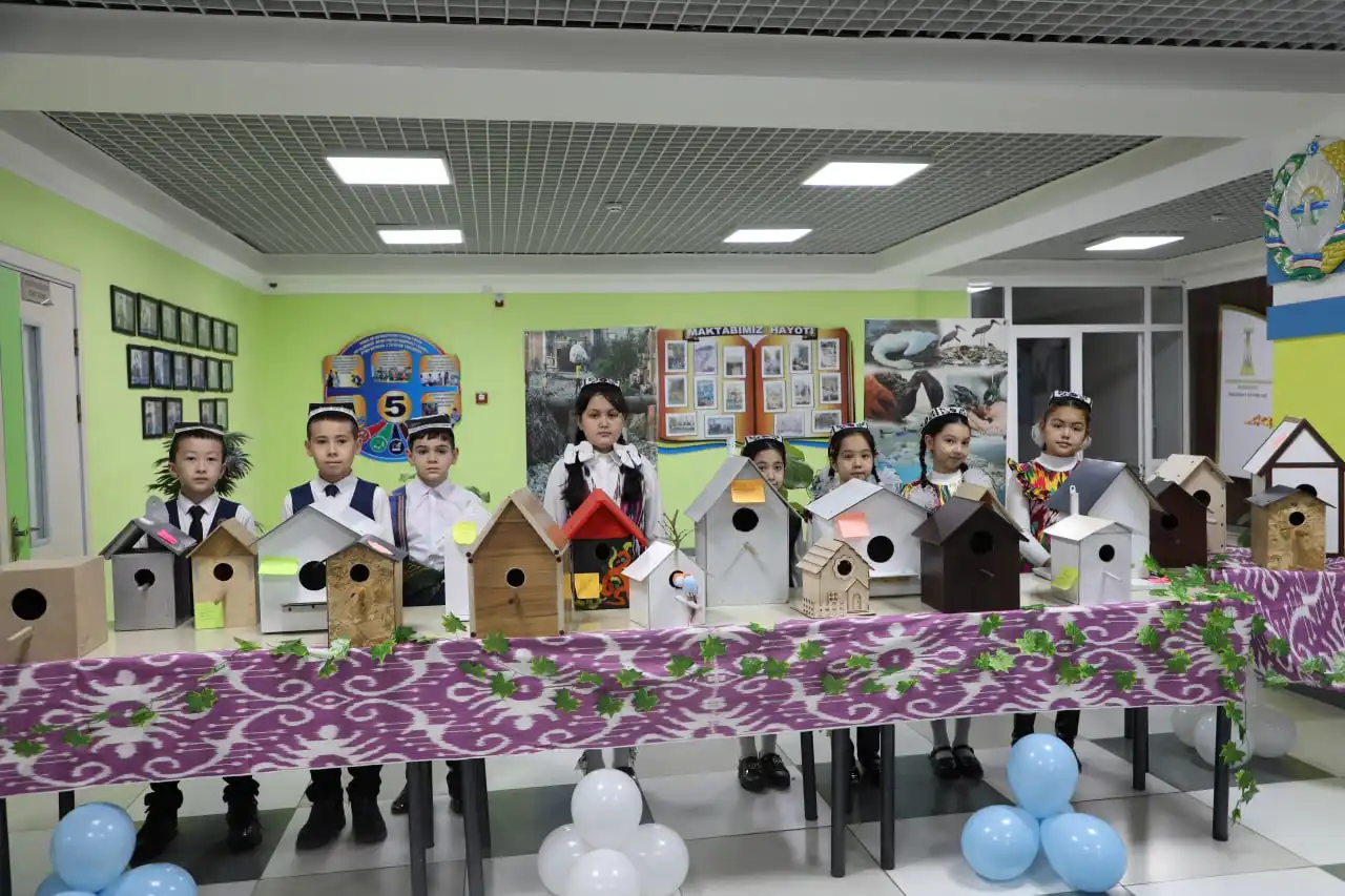 Bolalarda tabiatga mehr, ekologik madaniyat va ijodiy fikrlash ko‘nikmalarini shakllantirishga qaratilgan tadbir doirasida maktabning 1–7-sinf oʻquvchilari oʻrtasida tashlandiq materiallardan qush uyalarini yasash bo‘yicha ijodiy tanlov ham oʻtkazildi.