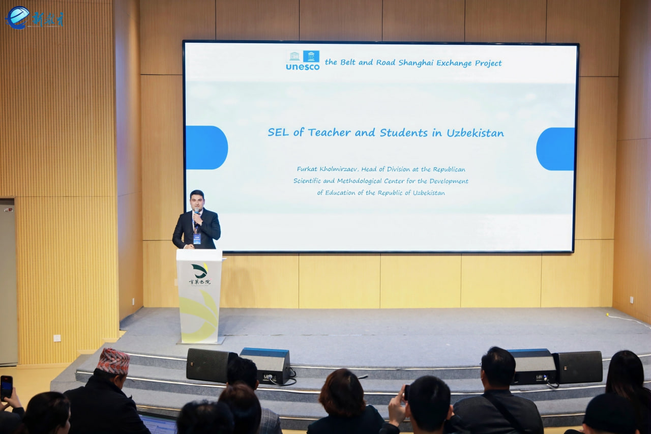 Taqdimotida Oʻzbekistonda SEL (Social and Emotional Learning) boʻyicha amalga oshirilayotgan ishlar, yurtimizda SI imkoniyatlaridan foydalanish holati, xalqaro tadqiqotlar (TALIS, PISA) asosida maʼlumotlar va milliy kontekstdagi loyihalar haqida soʻz bordi.