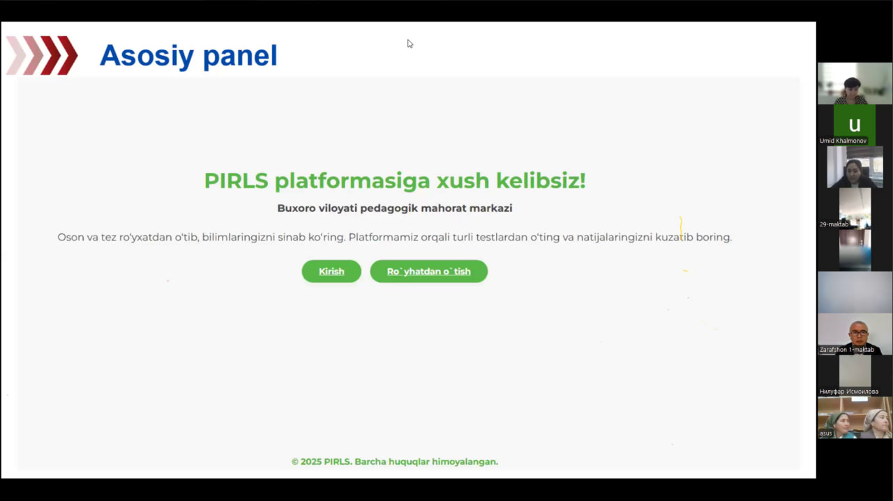 Erkin muloqot va faol bahs-munozaralar ruhida oʻtgan tadbirda Buxoro viloyati Pedagogik mahorat markazi fizika va astronomiya fani metodisti Mohidil Teshayeva “Buxoro tajribasi” misolida PIRLS xalqaro tadqiqotiga tayyorgarlik koʻrish jarayonida oʻquvchilarning raqamli savodxonligini rivojlantirish boʻyicha bir qator nazariy va amaliy maʼlumotlar berdi.