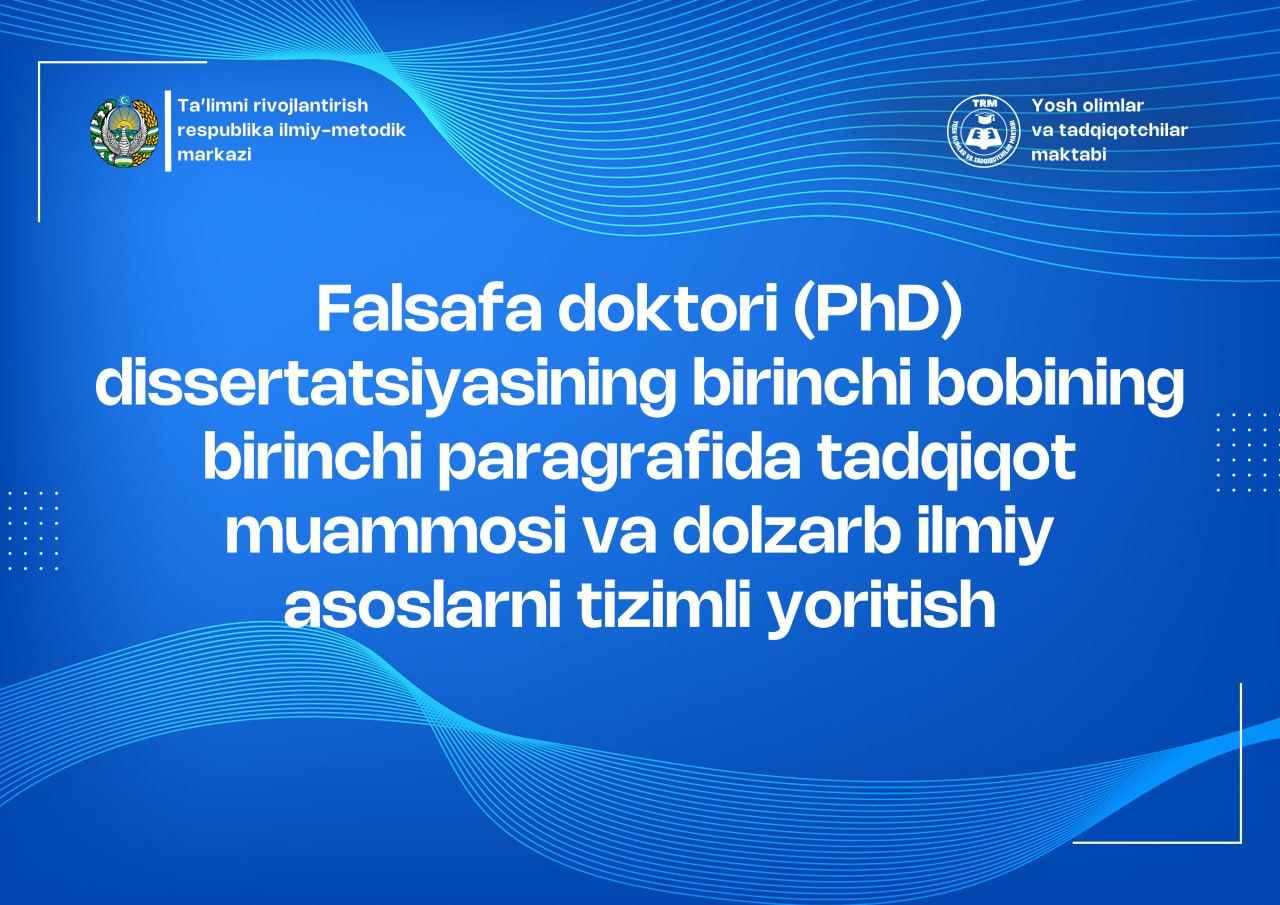 Mazkur taqdim etilayotgan maʼlumotlar ilmiy faoliyatni endigina boshlagan hamda ushbu jarayonni izchil davom ettirayotgan tadqiqotchilar uchun tavsiyaviy-metodik yoʻriqnoma sifatida tayyorlangan boʻlib, unda dissertatsiya ishlari uchun zarur boʻlgan eng muhim, rasmiy va amaliy ahamiyatga ega jihatlar yoritilgan. Ilmiy izlanishlarni samarali tashkil etish, ularning metodologik asoslarini toʻgʻri belgilash hamda PhD dissertatsiyasini yuqori ilmiy standartlarga muvofiq tayyorlash uchun tadqiqotchilar (dissertantlar) bir qator normativ-huquqiy hujjatlarni chuqur oʻrganib chiqishlari talab etiladi. Quyida keltirilgan asosiy meʼyoriy hujjatlar aynan ilmiy tadqiqot faoliyati jarayonida yoʻnalish beruvchi, ilmiy talablarni belgilovchi va dissertatsiya ishining sifat koʻrsatkichlariga bevosita taʼsir etuvchi manbalar sifatida katta ahamiyat kasb etadi: